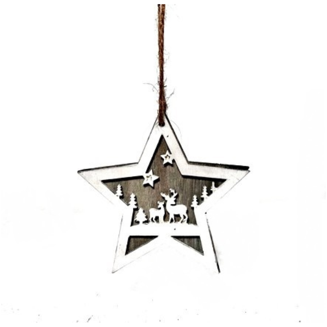 WOODEN REINDEER ON BASE SMALL - WHITE ENAMEL